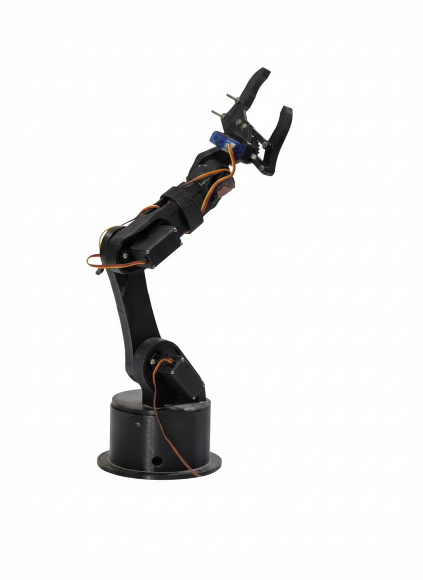 Kit complet pour l’enseignement de la robotique :1 Pièce d’imprimante 3D (noire et orange) 2 Vis et écrou 3 Servomoteurs MG90S 4 Servomoteurs MG995ressources pédagogiques et défis ludiques pour former les compétences de demain.